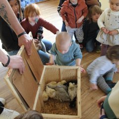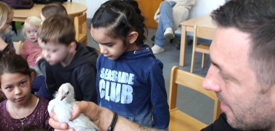 Oliver Wild hat Kinder mit Kücken vertraut gemacht