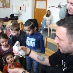 Bevor Oliver Wild zu den Kindern kam, war im Vorfeld mit den Erzieherinnen dieses sehr interessante Thema „Vom Ei zum Küken“ anhand von Bilderbüchern, Spaziergängen, Erzählgeschichten und Bastelaktivitäten vertieft worden. Nach dem Besuch vom Geflügelzüchter Oliver Wild wurden die von ihm mitgebrachten Geflügel-Malbilder ausgehändigt, die Malstunde konnte beginnen.