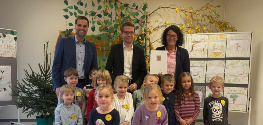Die Kinder begleiteten Ruhl aufmerksam durch die Geschichten und entdeckten gemeinsam mit ihm die Tiere des „Tapetenwaldes“. Zum Abschluss überreichte der Staatssekretär dem Kindergarten einen Förderbetrag von 500 Euro für neue Bücher, digitale Lernmaterialien und weitere unterstützende Medien.