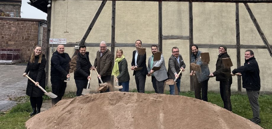 Mit einem symbolischen Spatenstich fiel nun der Startschuss für den Umbau des ehemaligen Garagengebäudes der Auerhahn-Brauerei im Hahnekiez. In dem denkmalgeschützten Gebäude entsteht das „Brauhaus im Hahnekiez , das künftig das kulturelle Viertel rund um die Kulturhalle ergänzt. Das Brauhaus mit Café soll bereits im Frühsommer eröffnen und mit gutbürgerlicher deutscher und hessischer Küche sowie regionalen Produkten überzeugen. Das Konzept sieht einen ganztägigen Betrieb mit Mittagstisch, Kaffee und Kuchen sowie Abendgeschäft vor. Insgesamt entstehen 170 Sitzplätze – 70 im Innen- und 100 im Außenbereich. Parallel zum Umbau entsteht eine neue Außenanlage mit 83 Stellplätzen, E-Ladesäulen, Fahrradabstellplätzen und einem Spielplatz. Auch eine öffentliche Toilette wird in das Gebäude integriert. Bürgermeister Heiko Siemon zeigte sich erfreut über den Projektstart: „Wir schaffen hier ein attraktives Angebot, das Kultur, Gastronomie und Stadtgeschichte miteinander verbindet.“ Mit der künftigen Gaststätte knüpft die Stadt an die Brautradition des Standorts an und stärkt zugleich das touristische Angebot im Herzen der Burgenstadt Schlitz.